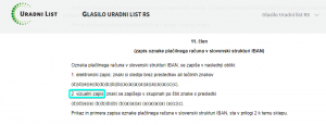 ki v 11. členu pod točko 2 definira vizualni zapis oznake plačilnega računa v slovenski strukturi IBAN.